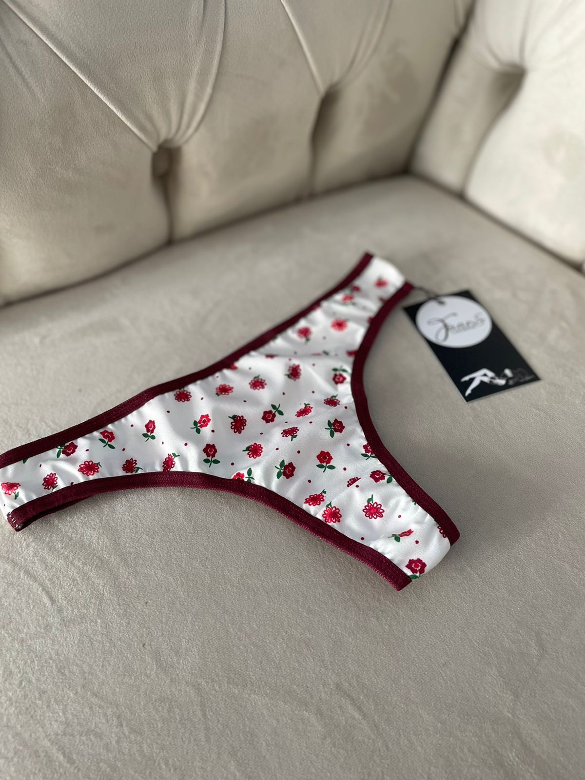 A calcinha confeccionada em microfibra estampada, tecido de boa qualidade e aceitação, possui detalhe de laço na parte traseira ou frontal, acabamento e costura no tom.