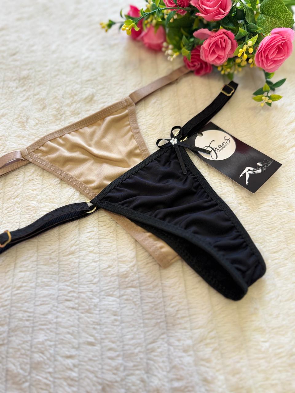 Calcinha modelo fio dental, desenvolvida microfibra de poliéster, com regulagem de metal para maior conforto, ajustando assim a peça para o tamanho ideal do seu corpo, forro 100% algodão.