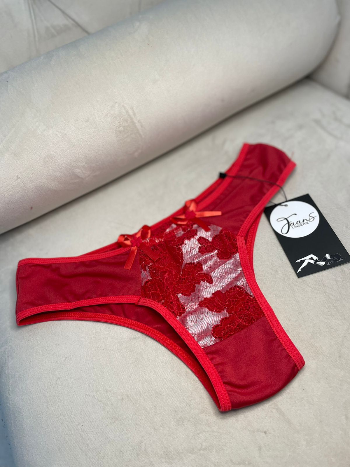 Calcinha de micro fibra com muito conforto e maciez, com detalhes frontal em renda e laços que dão todo um charme.