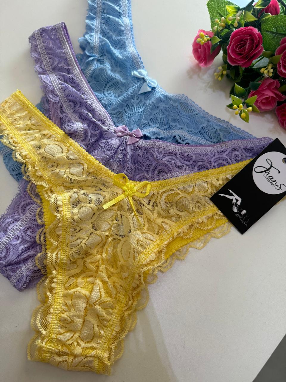 A calcinha Leva um fio dental em microfibra com cós rendado na parte de trás, valorizando as curvas e dando um toque de mistério. Composto por um lacinho lindo na parte da frente que traz charme e feminilidade, além valorizar o bumbum e deixar a noite muito mais sexy.