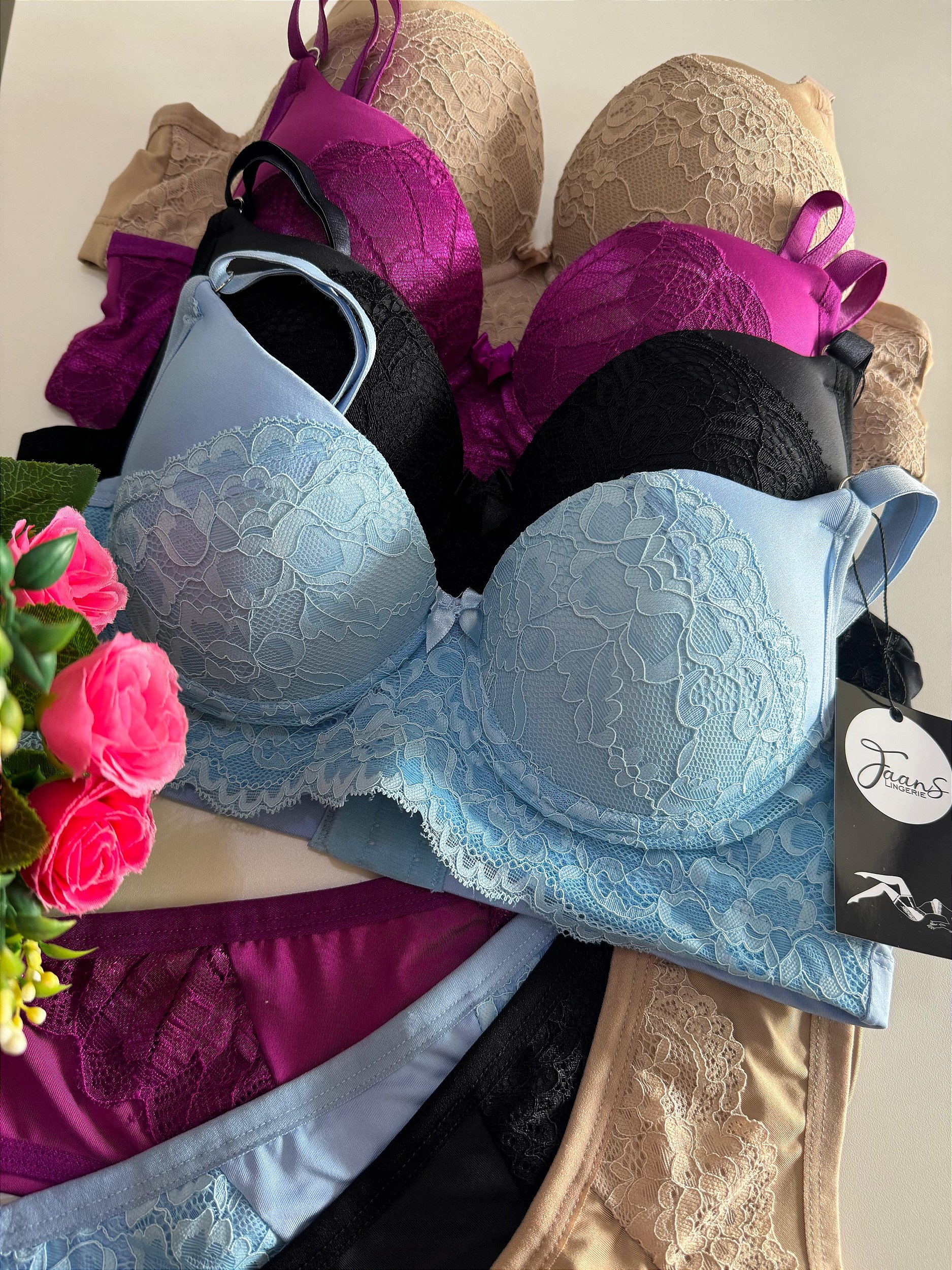 OBS. As imagens podem apresentar uma pequena variação de cor, considerando a calibragem de tela de cada celular ou computador, assim como as peças que contem rendas podem sofrer alteração.