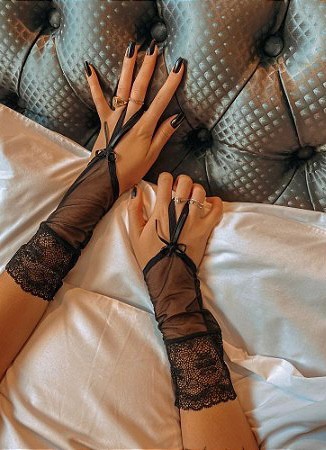 Combinado com outras lingerie, as luvas exalam mistério.